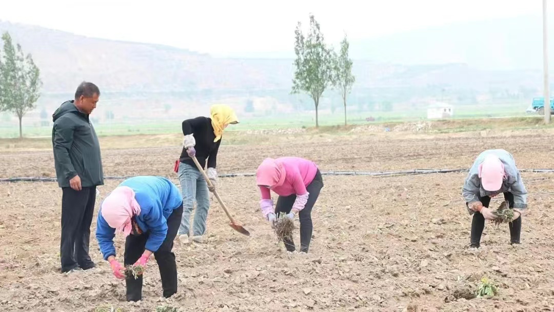 眼下正是中药材种植、管护的黄金期,在原州区头营镇蒋河村的田间地头,当地村民正趁着晴好天气,忙着给艾草放苗、松土,处处弥漫着沁人的药香。