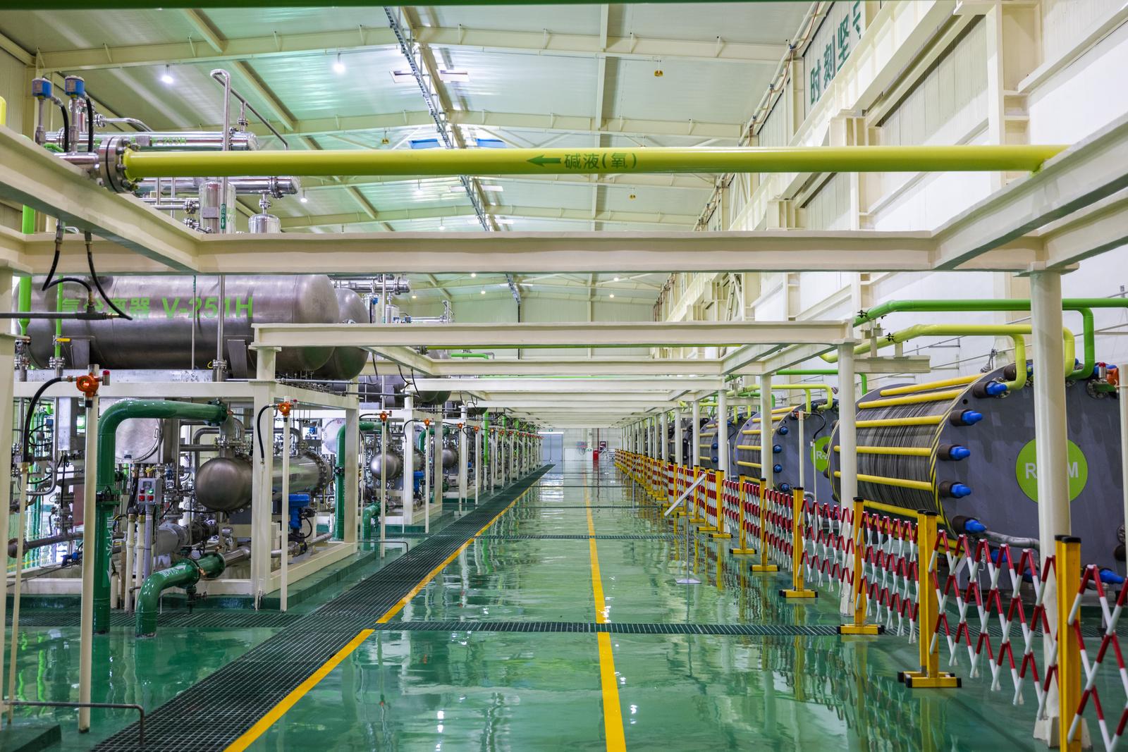 方案路径确定,却没有相应的设备。“我们要用绿色能源来替代化石能源,在能源化工这个行业应用,体量很大,这就要求提升设备的单体规模,同时做好众多设备集群的工艺系统优化、自动化和安全性。”刘飞坦言,当时的电解槽单体规模都很小,单台产能最多四五百标方,而且没有多套设备大规模生产的案例,而企业需要单台产能1000标方的设备。