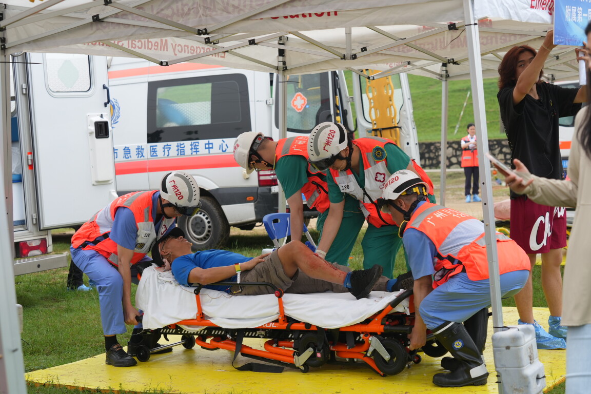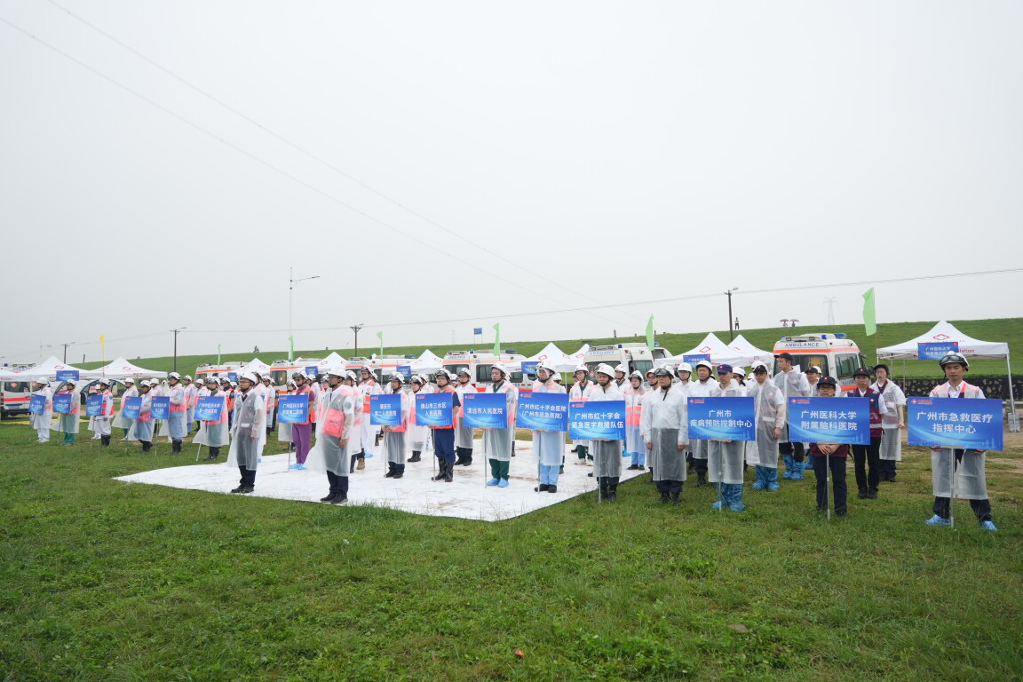 市卫生健康委应急指挥人员、市紧急医学救援指挥中心指挥人员,以及省人民医院、中山大学附属第一医院、广州市应急医院等10余家高水平医院应急队伍于北江大堤广州指挥分部区域集结。现场,可视化头盔、5G适配化改造救护车等多项高科技装备护航。
