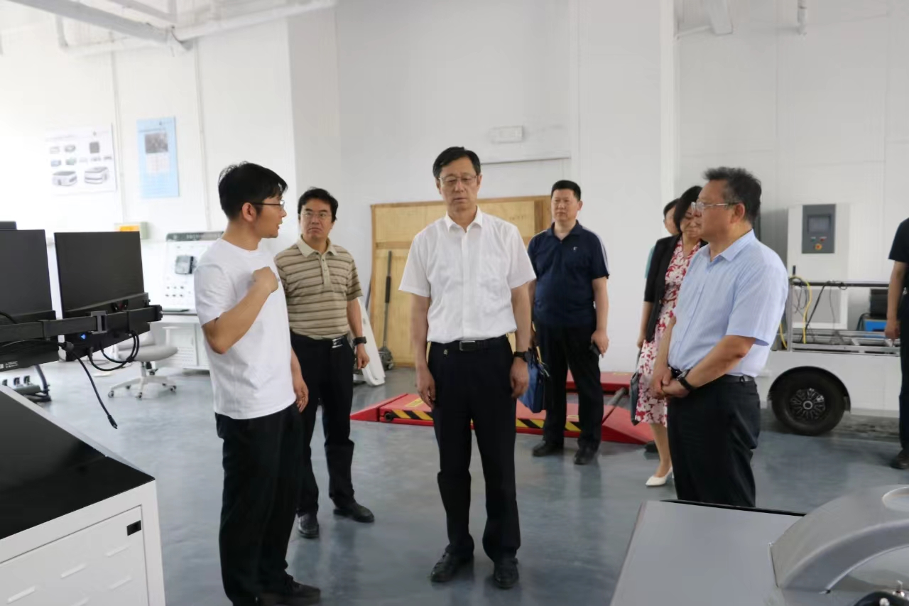 在科技成果展厅,陈雪梅就前沿院正式运营四年以来,在人才引培、平台建设、科技攻关、成果转化及项目落地等方面取得的工作成效进行了汇报。随后,陈西武一行体验了无人驾驶接驳车并实地参观了前沿院线控实验室,详细了解了前沿院在清扫、消防、配送等机器人领域取得的科研进展,对前沿院在服务济南高质量发展所做的贡献给予了充分的肯定。
