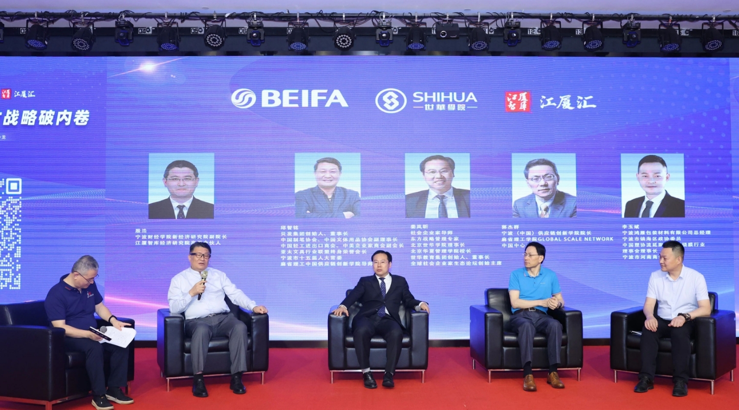 沙龙论坛环节,贝发集团董事长邱智铭、东方战略管理专家姜岚昕、宁波(中国)供应链创新学院院长郭杰群、宁波鸿雁包装材料有限公司总经理李玉斌,思维碰撞、思想砥砺,共同探讨“思想为成长赋能”。