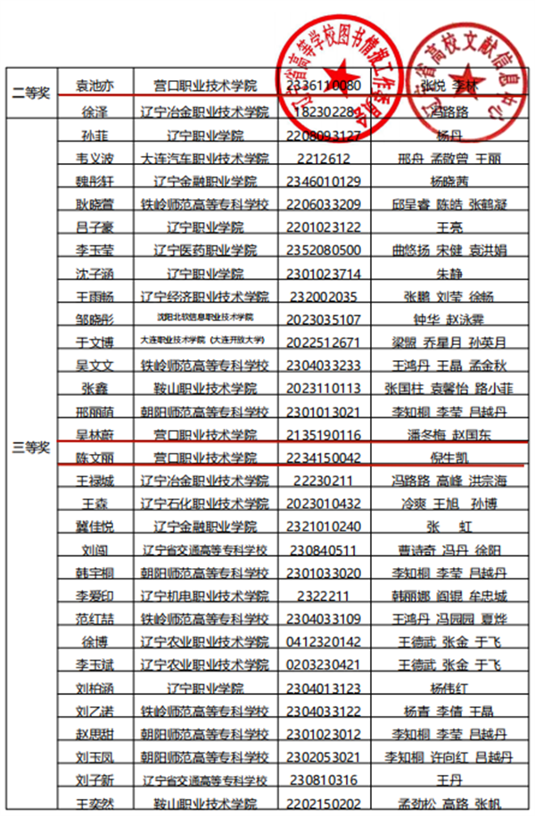 5月18日,“智信杯”第三届辽宁省普通高校大学生信息素养大赛落下帷幕。经过激烈角逐,我校共有15名同学在比赛中获奖,创造历史最好成绩。其中获一等奖3名、二等奖5名、三等奖2名、优秀奖5名;14名教师荣获优秀指导教师称号。我校图书馆在此次比赛中获得“特殊贡献奖”和“最佳团队奖”。