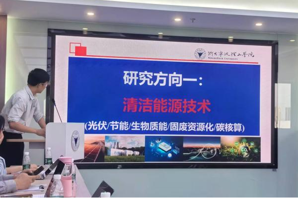 主题分享环节,浙大宁波理工的科研处处长胡长兴详细介绍了浙大宁波理工学院的发展历程以及科研情况,向与会企业家分享了新能源产业发展趋势、技术研究与应用案例。机电与能源工程学院副院长高能则介绍了“能源与环境系统工程研究所的研究方向及能源所科研与学生培养情况。