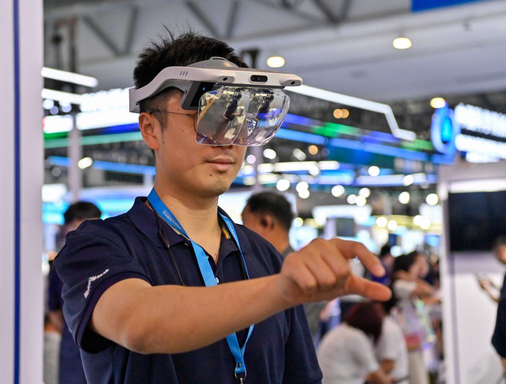6月18日,参观者在2024长春国际光电博览会上试戴VR眼镜。新华社记者颜麟蕴 摄