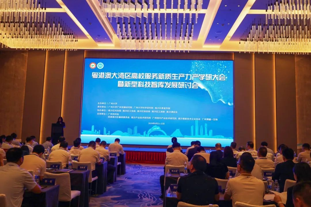 6月22日,粤港澳大湾区高校服务新质生产力产学研大会暨新型科技智库发展研讨会在南沙区举行。50多名高校及科研团队专家代表、近百位企业代表以及相关部门负责人参加此次大会,共同探讨新质生产力培育与粤港澳大湾区的融合发展路径,推动产学研深度合作,促进大湾区高质量发展。
