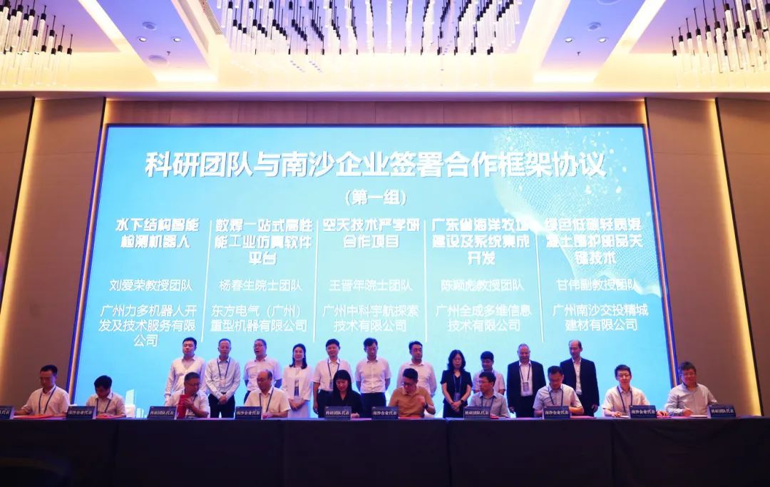 在签约仪式上,广州大学科学研究院与南沙区科技局、工信局、投促局、工商联等部门签署了战略合作框架协议,双方将在科技创新、人才培养等方面展开深度合作,共同推动粤港澳大湾区的科技创新和产业升级。此外,已达成合作意向的15项校企产学研合作项目双方代表上台进行现场签约。
