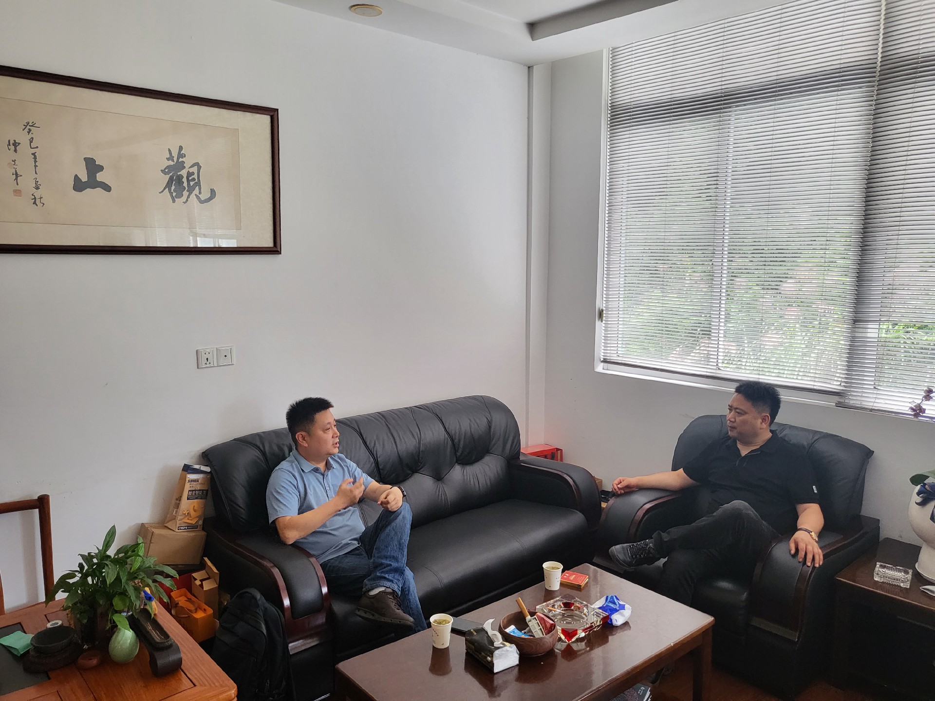 在会议室,宁波市铸造行业协会市场部王益儿、爱司凯科技股份有限公司3D打印事业部程远与宁波力古机械制造有限公司总经理陈海波开展座谈交流。
