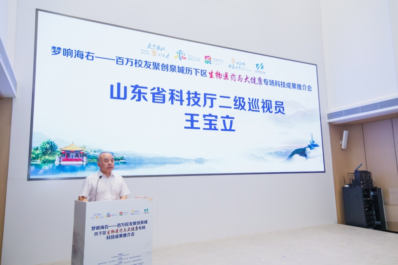 王宝立在致辞中表示,本次会议的举办是历下区促进辖区内高校院所科技成果就地交易、就地转化,构建科技成果转化新机制的重要举措和有益探索。希望通过本次活动各方积极整合成果、机构、人才、资金等资源,打造成面向区内外科技创新和产业发展的创新服务平台、人才交流平台,助推生物医药和大健康创新资源在历下区乃至济南市有效利用和落地转化。