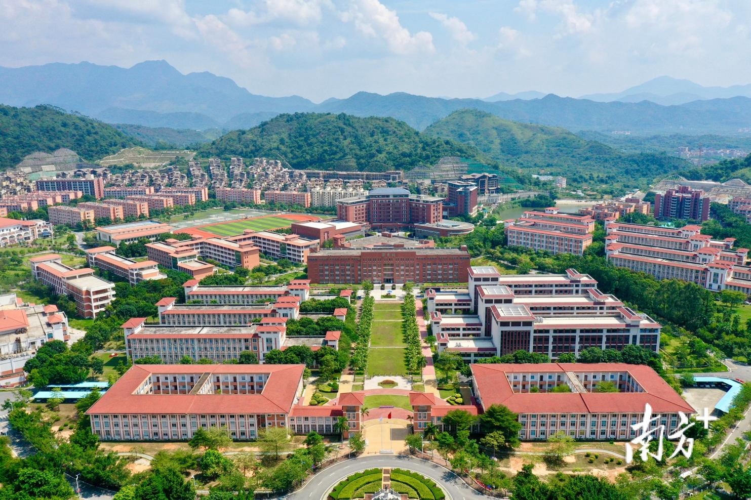 沿缓坡徐徐而上,广州南方学院坐落在绿野绵延之间。校园内的图书馆背靠大山,四周幽静。2个多月前,中国科学院院士汤涛来到这里,感到亲切:“是个读书的好地方。”