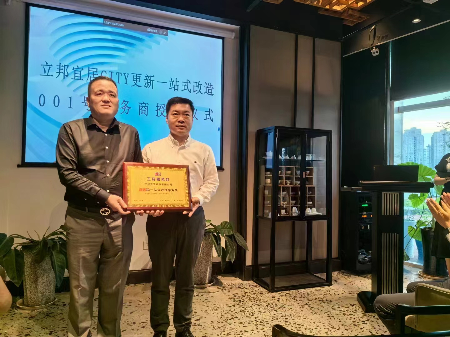 随后举办了隆重的签约和授牌仪式:中国建筑科学研究院宁波城市更新检测唯一授权单位、立邦宜居CITY更新一站式改造001号服务商授牌。