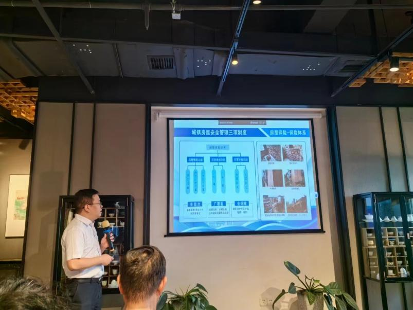 人保财险宁波市分公司明州营业部郑波总经理介绍了城镇房屋安全管理三项制度的房屋保险,从历史沿革、保险体系、服务体系、外墙保险展开分享,让大家进一步了解到多层次、广覆盖、全保障的保险,为建筑行业和社会大众的安全保驾护航。