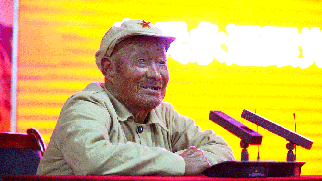 在红军寨,抗美援朝老兵闫满堂为大家分享了抗美援朝时的经历,讲述了那段艰苦卓绝的岁月。讲述过程中他还情不自禁唱起了抗美援朝时学的歌曲,老人语言真实而质朴,赢得了全体党员的尊敬和掌声。
