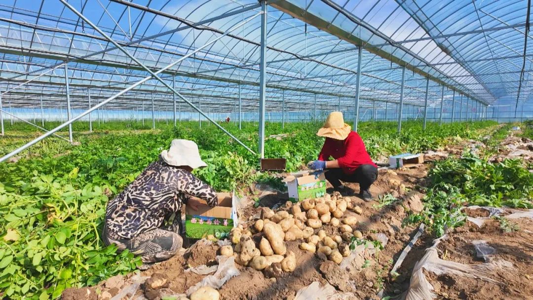 在二口村“设施+露天”冷凉蔬菜种植示范点,一座座日光拱棚内郁郁葱葱,马铃薯茎秆挺拔、枝繁叶茂,一个个刚从土里刨出的马铃薯带着泥土,格外鲜嫩。该基地马铃薯平均亩产3000斤,由于生长周期短、薯皮光滑、芽眼浅、耐储藏等特点,在市场上深受消费者青睐,每斤售价3元左右。