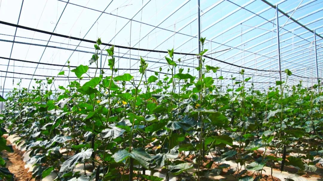 走进王民村设施农业基地黄瓜大棚,清新的瓜香扑面而来,处处绿意盎然、生机勃勃,碧绿的小黄瓜挂在藤蔓上。一大早,村民们忙碌着整枝、打杈、摘果、装箱、外运。村民王翠莲正熟练地寻找成熟可摘的黄瓜。
