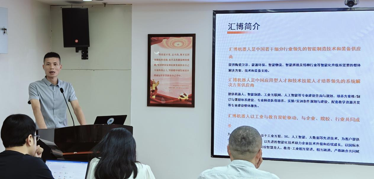 江苏汇博机器人技术股份有限公司围绕人工智能在工业产业、教育培训等领域的应用,作“人工智能服务教育与工业双轮驱动”交流分享。