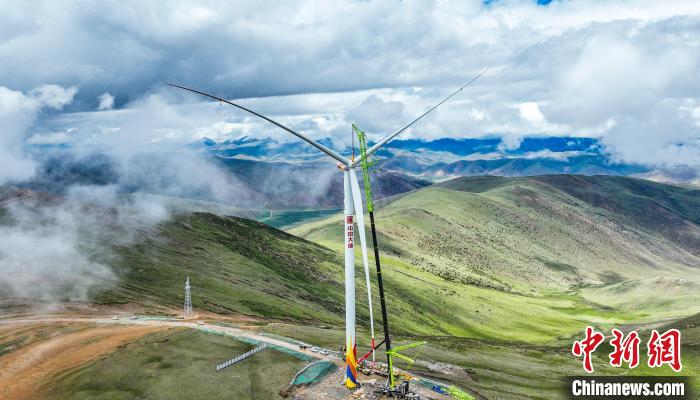 世界最高海拔风电项目首台风机吊装完成 宋先吉 摄