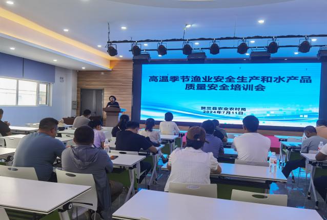 观摩结束后,组织召开了全县水产养殖绿色发展工作座谈会及渔业安全生产、水产品质量安全培训会。会上,贺兰县水产站负责人,就我县2024年重点渔业发展项目推进情况、水产绿色健康养殖技术推广“五大行动”推动落实及全县渔业尾水治理情况等进行了通报。2名渔政执法干部分别就渔业安全生产和水产品质量安全工作作了现场培训讲解。科海、海鹏、海迪等3家基地负责人就推广渔业新模式、新品种、新技术作了交流发言。