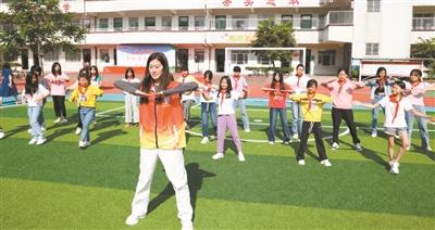 立白关爱留守儿童志愿服务队正在为孩子教授舞蹈课程。
