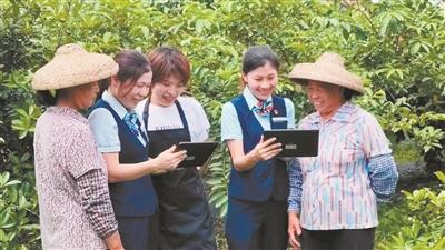 番禺区邮政员工深入果园为村民介绍涉农贷款方案,解决其资金需求。