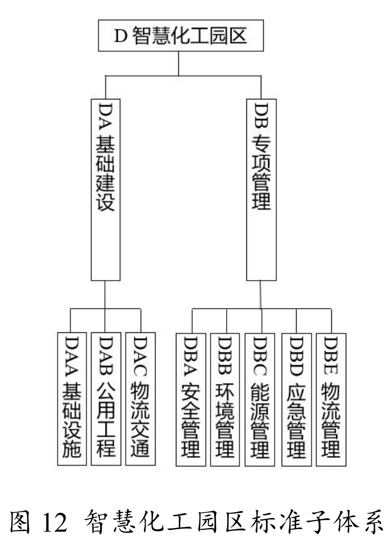 智慧化工园区标准包括基础建设、专项管理等2个部分,如图12所示。