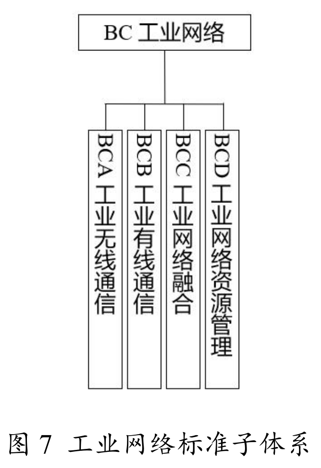 工业网络标准包括工业无线通信、工业有线通信、工业网络融合和工业网络资源管理等标准,如图7所示。工业网络标准除引用《国家智能制造标准体系建设指南(2021 版)》中的工业网络标准内容外,对行业内隔爆、本质安全等应用要求展开描述。