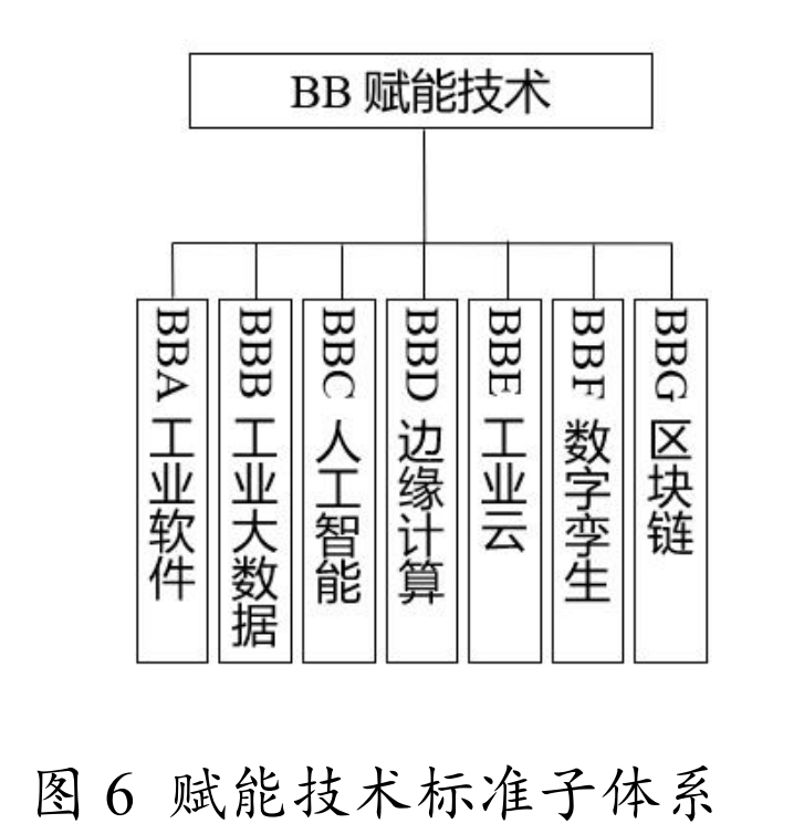 赋能技术标准包括工业软件、工业大数据、人工智能、边缘计算、工业云、数字孪生、区块链等标准,如图6所示。赋能技术标准除引用《国家智能制造标准体系建设指南(2021 版)》中的赋能技术标准内容外,对行业内功能安全、信息安全、化工安全等展开描述。