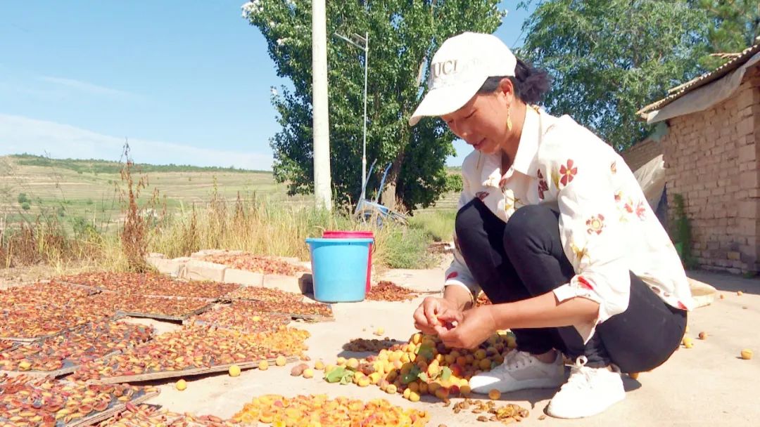 盛夏时节,走进兴平乡赵垴村,山间的杏树上挂满了金黄色的杏子,空气中弥漫着淡淡的果香。村民们穿梭其间,或捡拾落果,或采摘杏子,一派繁忙景象。村民米武女每天一大早就上山采摘山杏,待天气炎热便回家捏杏核、晒杏干。通过出售杏干、杏核,每年都有7000-8000元的收入。漫山遍野的山杏让她在实现照顾家庭、农业生产两不误的同时,也拓宽了她的增收渠道。