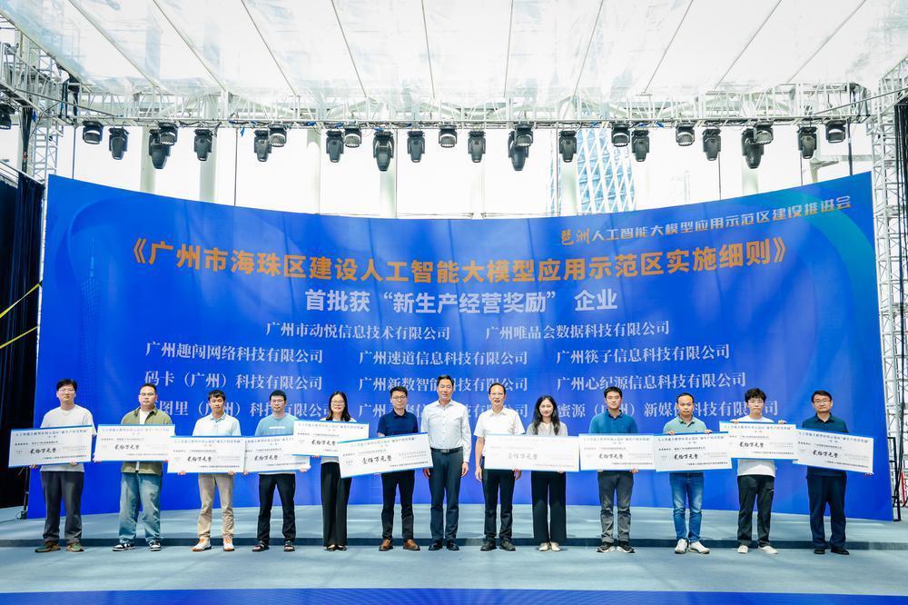 7月17日,广州市海珠区举办琶洲人工智能大模型应用示范区建设推进会。会上,宣布广州(琶洲)大模型创新服务中心正式揭牌成立,并进行首批新生产经营奖励政策兑现,向第一批预认定大模型示范空间授牌。