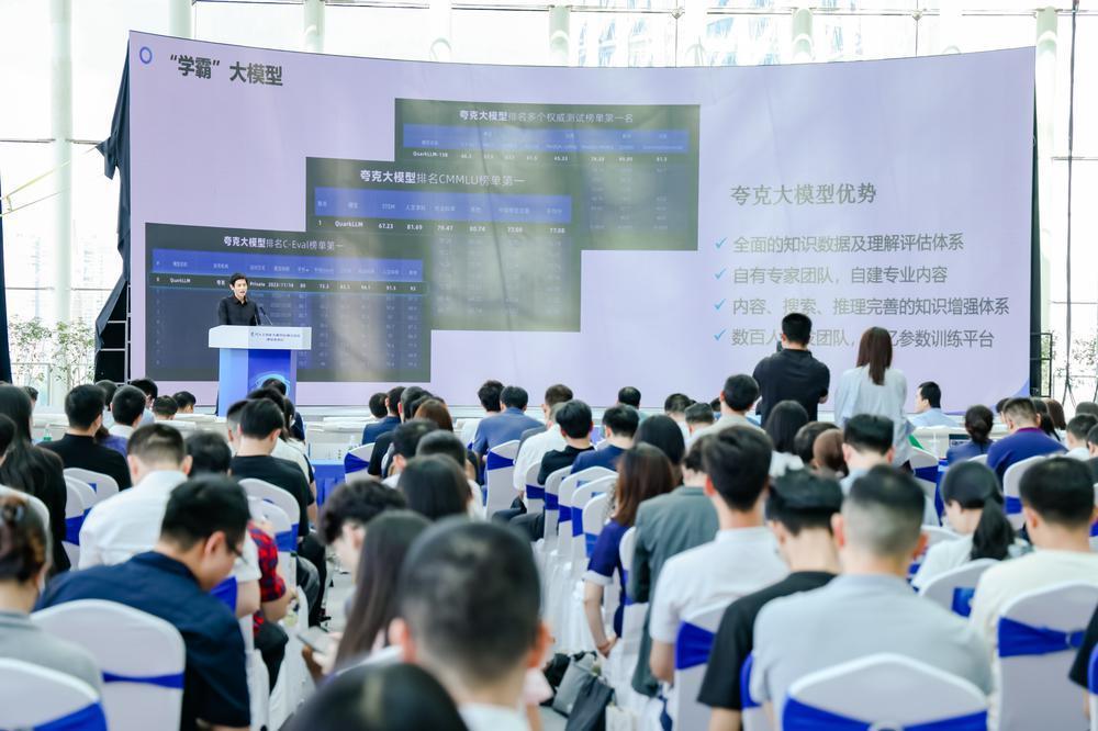 本次推进会现场发布了夸克AI搜索、科大讯飞课堂语言分析助手、云蝶科技教研辅助3个大模型产品。