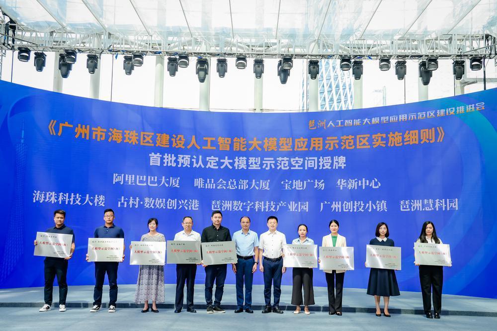 近期,海珠区发布首批9个预认定大模型示范空间,分别是阿里巴巴大厦、唯品会总部大厦、宝地广场、华新中心、海珠科技大楼、古村·数娱创兴港、琶洲数字科技产业园、广州创投小镇、琶洲慧科园,并在本次大会上进行集中授牌。