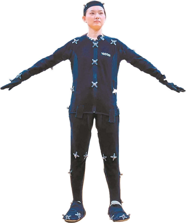 在咏声动漫的工作室内,记者穿上专用“动捕服”,体验动作捕捉技术。图/广州日报新花城记者:高凯珅、王安蕾 实习生杨嘉沁