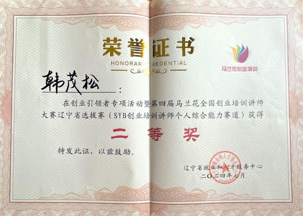 在个人综合能力赛道中,经过参赛选手参加理论考试和现场精品课展示等比赛环节,我校省级创业培训讲师韩茂松老师获得了大赛个人综合能力赛“二等奖”。