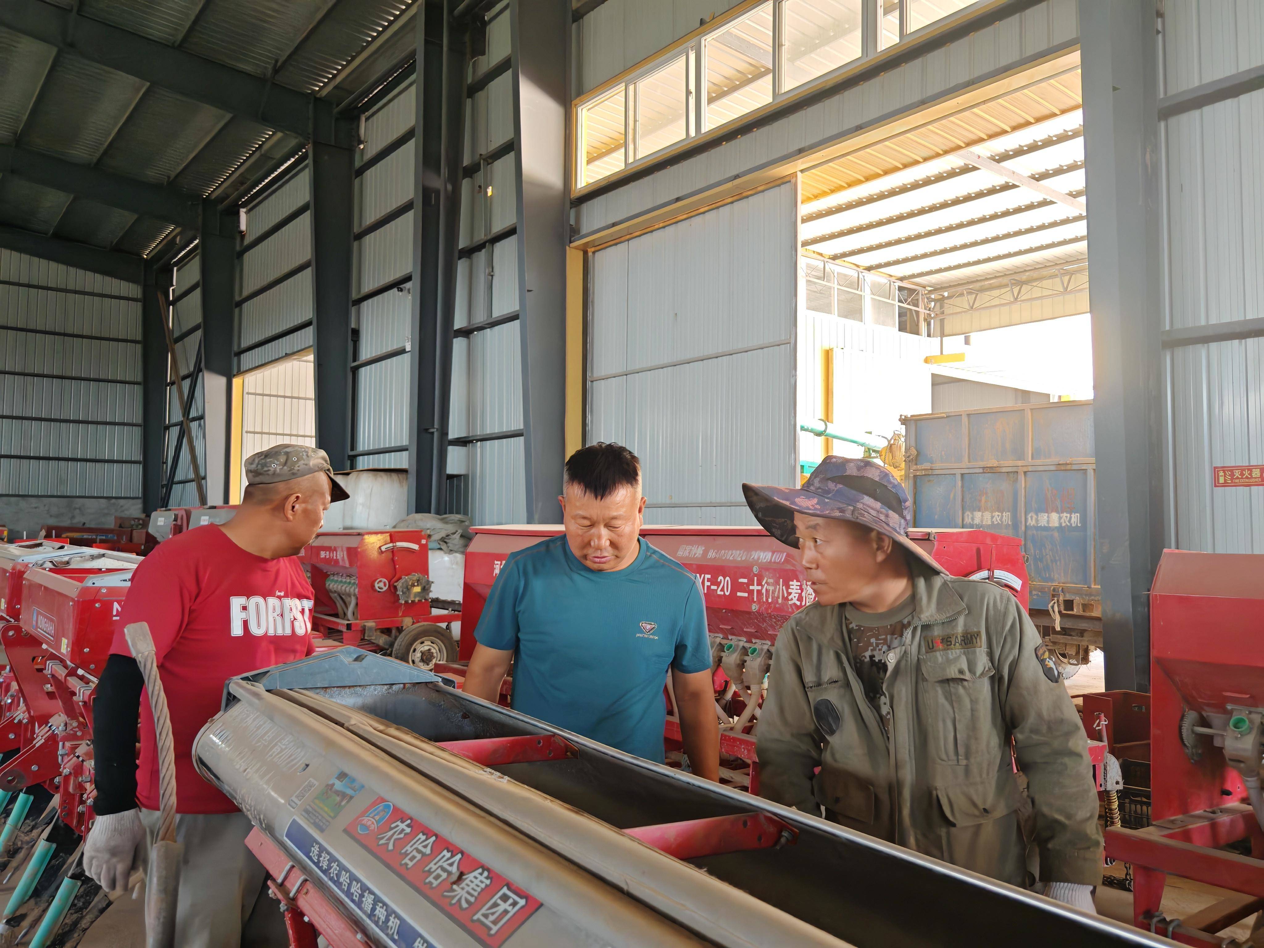 近日,在青铜峡市瞿靖镇光辉村的宁夏众聚鑫农机作业服务有限公司仓库里,一台台先进农机摆放整齐。该公司负责人李波向种植户一一介绍机械的使用功能。