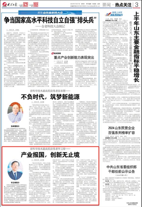 大众日报:省科学技术最高奖获得者华卫琦——产业报国,创新无止境