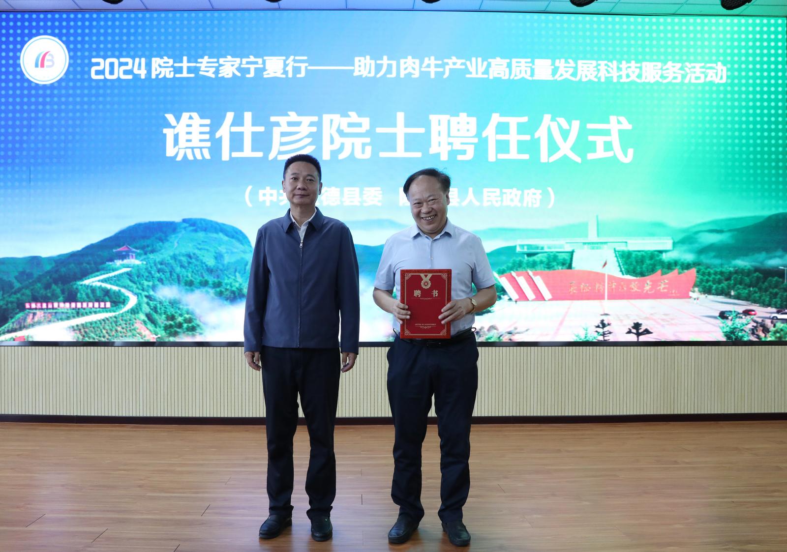 隆德县聘任谯仕彦为肉牛营养与饲料科学顾问并颁发证书。