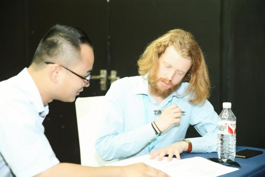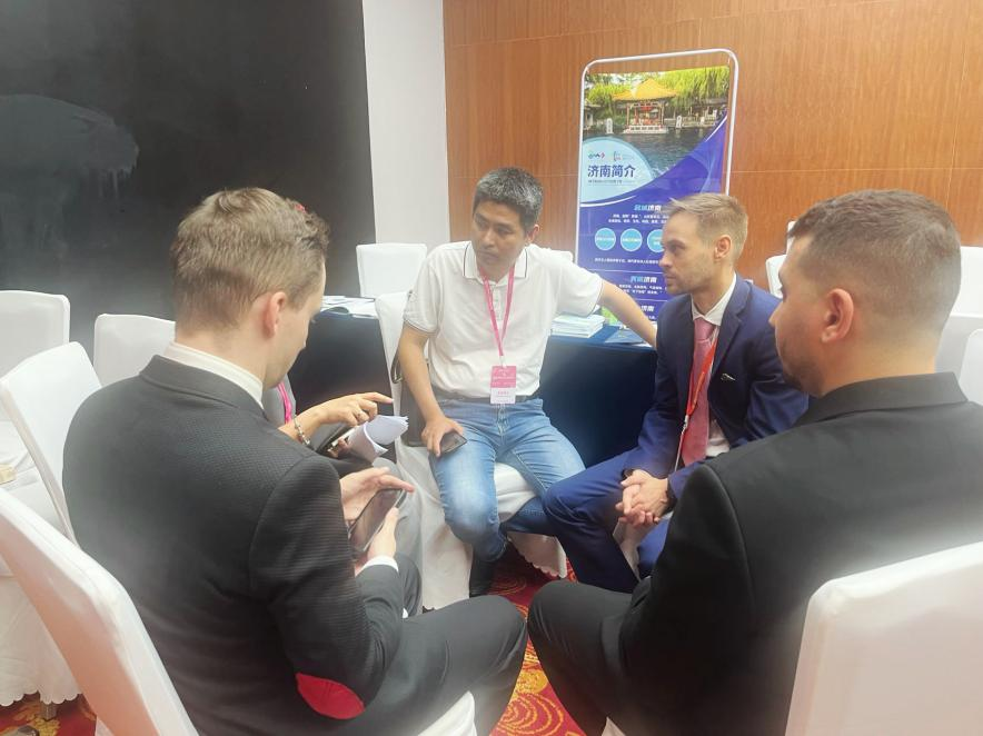 在大赛现场,济南市海智创新研究会秘书处积极引导有落地济南意向的海外项目到洽谈室与济南市区县有关负责同志进行会谈,进一步推进项目落地可能。