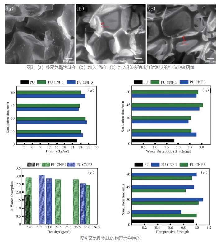 在3种聚氨酯泡沫中,唯一具有封闭气泡结构的刚性聚氨酯泡沫无疑是这种增强方法的最大受益者,常用于建筑领域的刚性聚氨酯泡沫最重要的力学性能和隔热性能也能随着碳纳米材料的加入而得到改善。