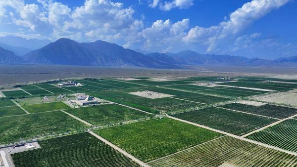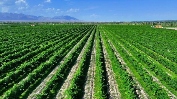 8月3日,贺兰山东麓酿酒葡萄种植基地里葱郁繁盛,果实累累,迎来果实成熟期。走进贺兰山脚下的葡萄园,一串串饱满的葡萄挂满枝头,在阳光下熠熠生辉。