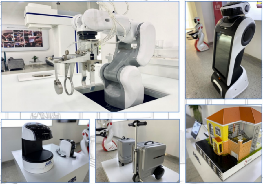 大众服务智能化——教育娱乐场景:教育娱乐机器人以其趣味性和互动性深受青少年喜爱。在科普基地的这个区域,孩子们可以与机器狗、拳击机器人等互动游戏,通过实际操作感受趣味科技、享受学习乐趣。四足仿生机器狗、智能家居小屋、写字机器人…