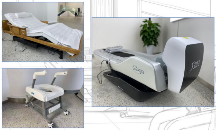 大众服务智能化——医疗康助场景:医疗健康领域的机器人同样引人注目。从辅助按摩的机器人到康复训练的机器人,它们的应用极大地提高了医护服务的效率和便利程度。在这里,青少年可以聆听讲解老师介绍这些机器人的工作原理和实际应用案例,感受科技如何为人类的健康保驾护航。智能医养护理床、小愈机器人、消杀机器人…