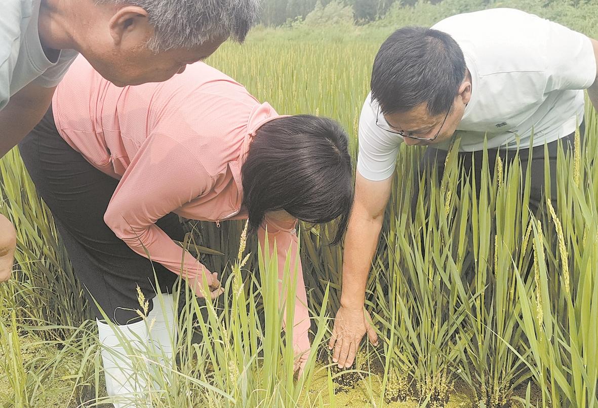 农业专家实地研判强降雨对齐穗期水稻的影响。