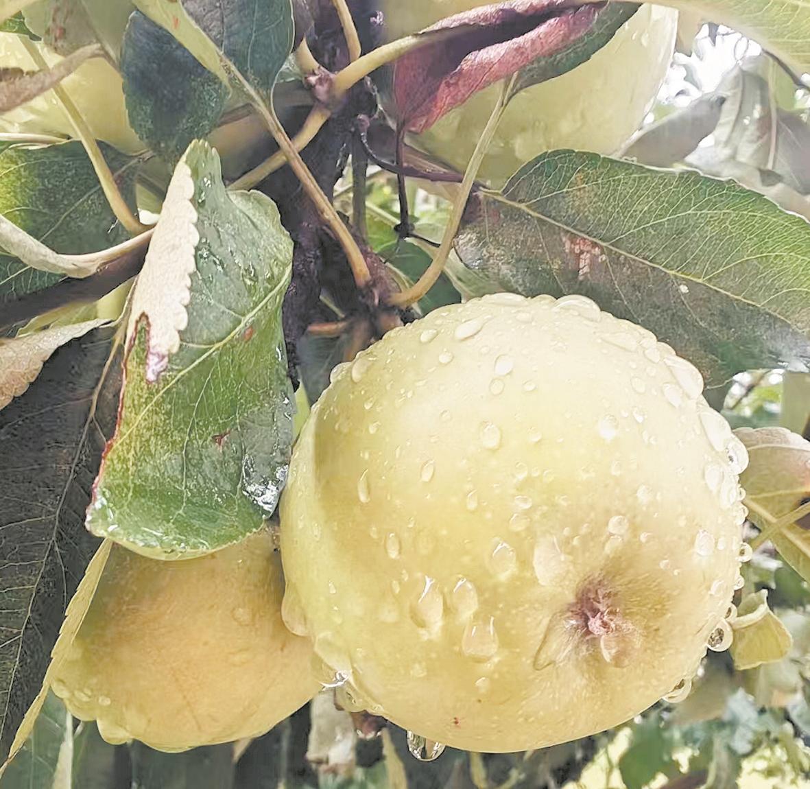 苹果正处于果实膨大期,涝害易导致根系缺氧引发腐烂,影响树体生长,降低果实品质和产量。雨后可采取以下措施:一、出现水涝的果园,及早清除树盘的淤泥,将根颈和粗根部分的土壤扒开晾根,晾干7—10天后再培土。二、倒伏、倾斜的果树,有条件的可设立支柱尽快扶正。三、及时防治病虫害。