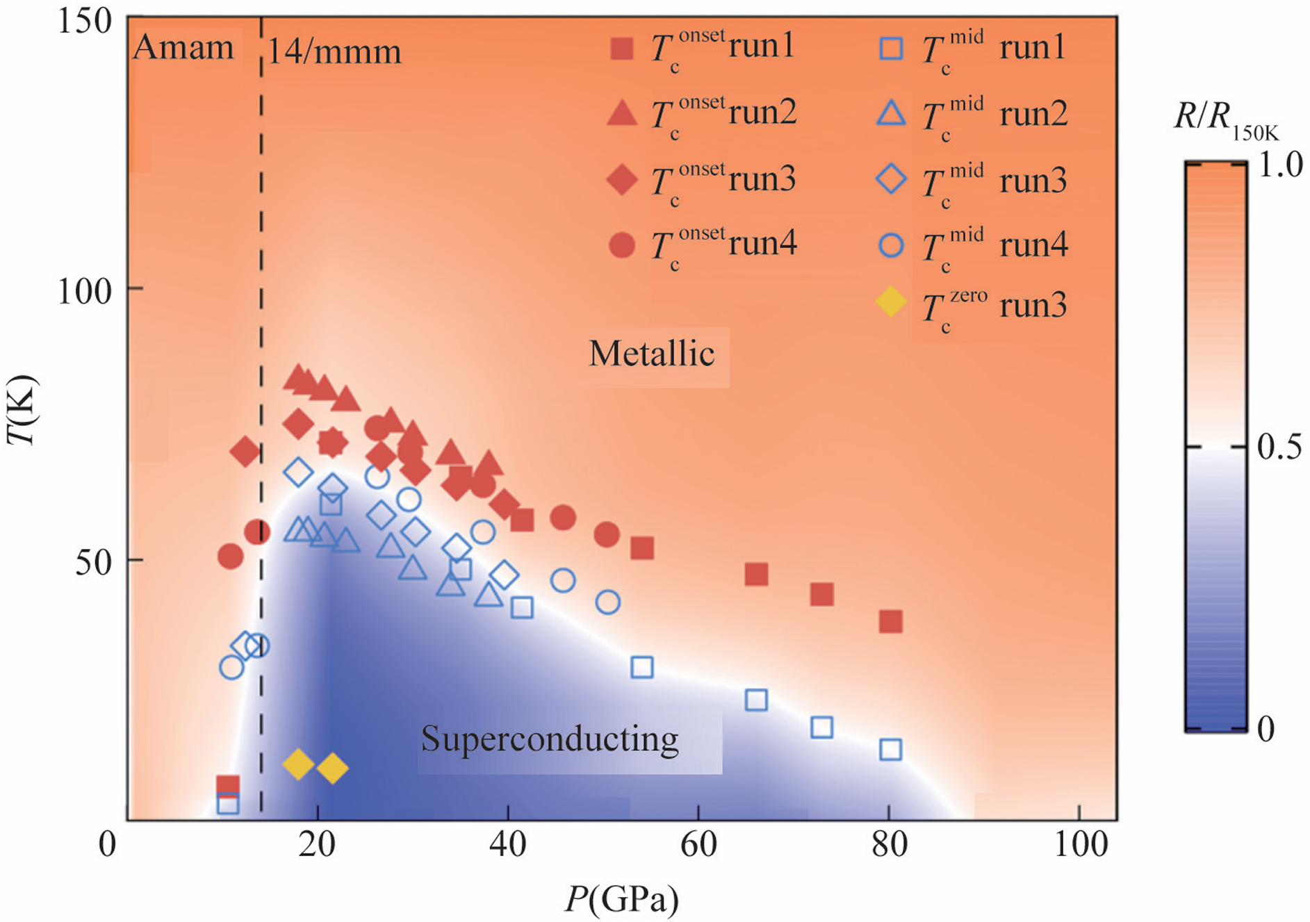 图4 La3Ni2O7单晶在常压至104GPa压力范围内的超导相图