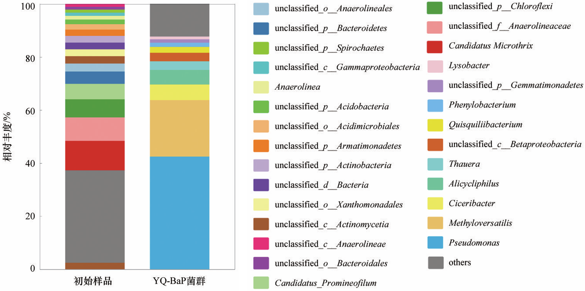 图1 初始样品和YQ-BaP菌群在属水平上的群落结构