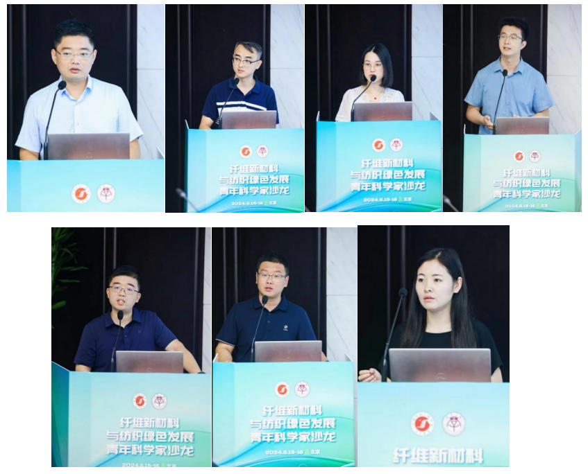 自由发言环节,青岛大学田明伟、安徽农业大学龚维、武汉纺织大学李沐芳、安徽农业大学叶冬冬、天津工业大学张阳、太原理工大学史晟、四川大学陈琳等青年科学家们,围绕抗拉伸干扰高弹性电子纱线及可穿戴应用、智能纤维的设计与连续化构筑、纤维基柔性传感材料的研究及应用挑战、新型纤维素绿色功能纤维材料开发、高效短流程纯亚麻干法纺纱关键技术研究及产业化、废旧纺织品综合利用路径解析、废旧纺织品的化学回收循环等话题,分享了各自最新的研究成果。