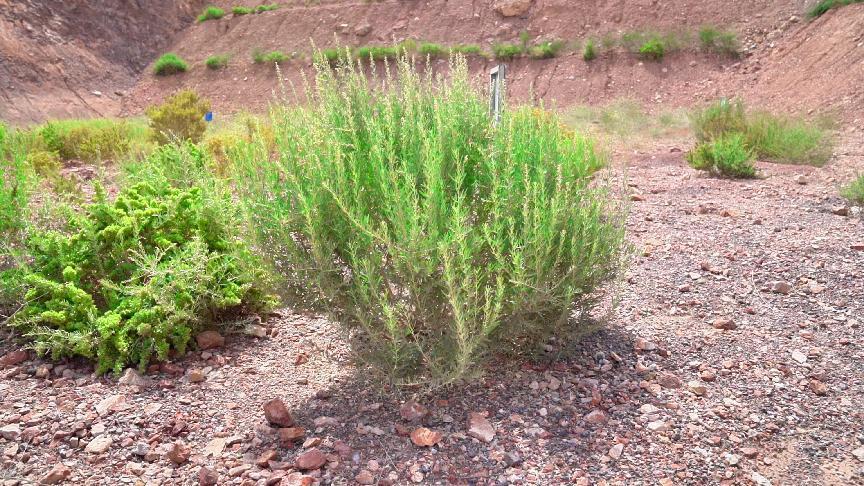 中卫天景山地区属中温带大陆性干旱气候,具有典型的大陆性季风气候和沙漠气候的特点。春暖迟、秋凉早、夏热短、冬寒长,风大沙多,干旱少雨。年平均气温在8.2~10℃之间,年均降水量138~353.5毫米,年蒸发量1729.6~1852.2毫米。在这样一个高温干旱、少雨而蒸发量大的环境,以及无人为干预的情况下,灌木能熬过漫长的寒冬,在烈日的炙烤下长势如此旺盛,实属不易。