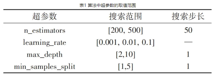 根据表1范围,对模型超参数进行网格搜索。在n_estimators为500、learning_rate为0.01、max_depth为4、min_samples_split为2的情况下预测结果最优。