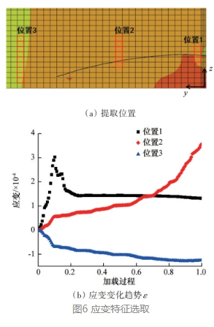 根据有限元应变变化过程,在裂纹周边选取20个应变传感器安装位置。如图7所示,分布式光纤应变传感器测量范围分别为30、60、90mm,由此实现对裂纹周边影响区域的多尺度应变信息采集。