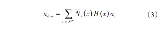扩展有限单元法计算含裂纹区域节点位移u包括节点的连续位移uc和不连续位移udisc2部分