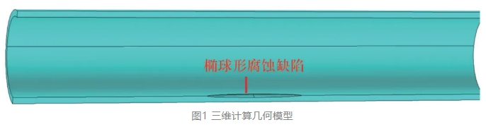 金属管道在外力作用下将产生应变变形,金属管道所受应力应变状态将显著影响金属管道内壁的电化学特性。使用小塑性变形模型和Mises应力屈服准则实现对管道结构的弹塑性应力仿真,采用各向同性的硬化模型计算管道在塑性变形阶段的应力应变,当金属管内充满海水时,忽略金属管道中其他杂质的溶解反应,仅考虑铁的电化学反应,即考虑金属表面仅发生铁的氧化反应与氧的还原反应。通过参考文献中的力学-电化学耦合数学模型嵌入仿真计算软件,建立存在椭球形腐蚀缺陷的20#钢金属管道仿真计算模型。